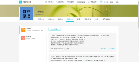 王老师通过云班课发布视频、进行讨论,同时通过腾讯课堂开展直播教学。经过这段时间的线上学习,嘿嘿,整体感觉还挺新鲜!王老师在云班课上发布每节课的学习目标、讨论内容和作业,这既能帮我们巩固《自动控制原理》的知识点,同时也有助于引发我们去思考。个人觉得吧,王老师上传到云班课的视频固然能帮助我们理解知识点,但是视频较长,还不一定能看懂,万一网络卡顿还得从头再来,不太容易集中精力啊!