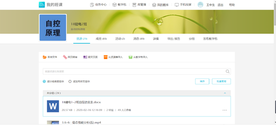 王教授团队提前熟悉“云班课”平台的功能,将省级精品资源共享课程中录制好的教学视频,按照教学需要量(24个视频)上传到“云班课”平台中,同时也将教学大纲、教学课件(PPT)、电子教材,教学进度表等辅助资源上传到系统,让学生充分了解课程教学要求,并能方便查阅相关材料。