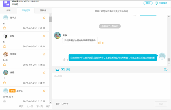 《自动控制原理》在线课堂已持续了五周,学生们主动与老师沟通互动,积极分享线上教学的体会及感悟、思考与建议,为王教授的教学团队进一步改进教学策略,优化教学模式,提升教学成效提供了参考。