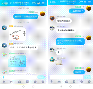 为巩固学习成果,对知识点进行消化,课后将布置适量作业,同学们完成作业后通过QQ群提交,教师及时通过后台数据了解学生完成情况(图8)。除监督学生按时完成作业,及时批改学生作业外,线上教学还需加强答疑(图9)。本课程每周四下午为线上答疑时间,答疑过程中同学们气氛活跃,回答踊跃,教师只需适时给予引导。很多时候,有同学提出的疑问,其他同学就解答了,有时还会演变成大讨论,这样的情形在我们传统的课堂教学中是比较难得的。线上答疑既给同学们提供了一个相互学习、相互促进的机会,又提高了学生的自我学习能力。另外,为拓展学习资源、开拓学生视野,本课程将中国大学MOOC平台西安交通大学的《机械设计基础》作为课后补充学习资源。