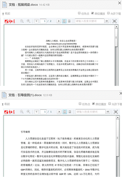 案例分析法是管理类专业课程教学的必要方法,由于在校学生缺乏社会工作经验,对企业的管理运作了解甚少,必须通过典型案例的学习来掌握理论知识,提高综合分析能力。通过在平台中上传课前引导案例、课程相关链接和拓展阅读案例,使学生在学习人力资源战略和人力资源规划内容时能够在具体情境中消化和吸收理论知识,并且能够运用理论知识分析和解决企业人力资源战略与规划的具体问题(见图4)。