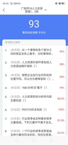 本课程通过理论知识透析、课后自测题、在线作业批阅和反馈、主题讨论和答疑等实现教学活动的“交互性”和学生学习的高度“自主性”,通过专业性和拓展性教学资源,努力打造为专业模块课程的“精品课”。本学期有18人力二个班共99名学生参与该课程的学习。