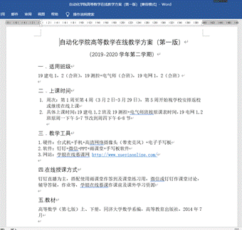 在正式上课前两周,教师联系19建电1班、2班、测控、电气师共四个班级的学委(上学期教学班级,另外两个班级后来加入),对腾讯课堂、企业微信、雨课堂、蓝墨云、钉钉共五个平台进行了为期五天的测试(每天测试一个平台),师生互相体验各平台的教学效果,比较各平台的优劣,确定“钉钉直播+雨课堂”的在线授课方式。教师查看了中国大学MOOC、超星尔雅、学银在线、智慧树共四个慕课网站,确定学银在线网站中使用相同教材的高等数学课程慕课作为学生的自学资源。