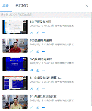 利用PPT或EV录屏,可以对一些比较容易的教学内容或某些例题中繁杂的计算过程录制一些短视频,发到钉钉群上,节省直播授课的时间,让学生提前预习或课后复习。直播和录播的结合能使在线教学方式多样化。