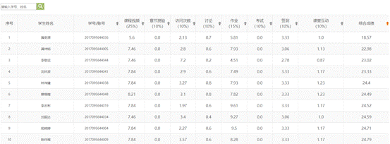 对于教学过程,合理设置每个环节的权重与分值,对学生学习过程形成一个总体的评价。同时也能通过监控学习过程掌握学生的学习特质与行为,为后续教学活动开展提供一些思路与参考。