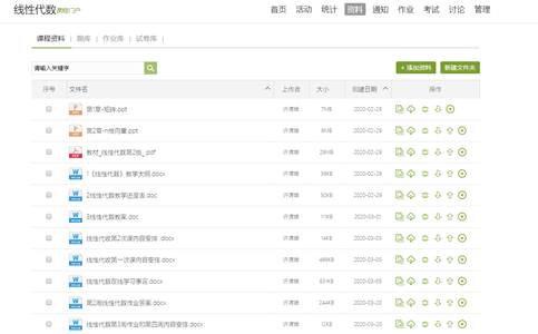 在超星学习通、微信群同步上传了《线性代数》的教材电子版文件、配套的PPT文件、教学大纲、教学进度表和教案等资料,如图2所示。