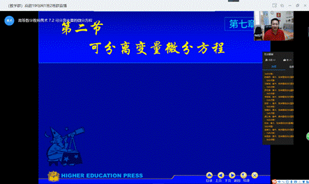 两们老师的线上课堂,课件结合写字板推导教学内容,每一个定理都会详细给出证明过程并有相关例子来巩固知识点。注重与学生的线上沟通,确保线上课堂每一个重点难点都能清晰讲解。课堂气氛较好。针对所布置作业批改后会在讨论群及时反馈,对易错点进行进一步总结归纳。