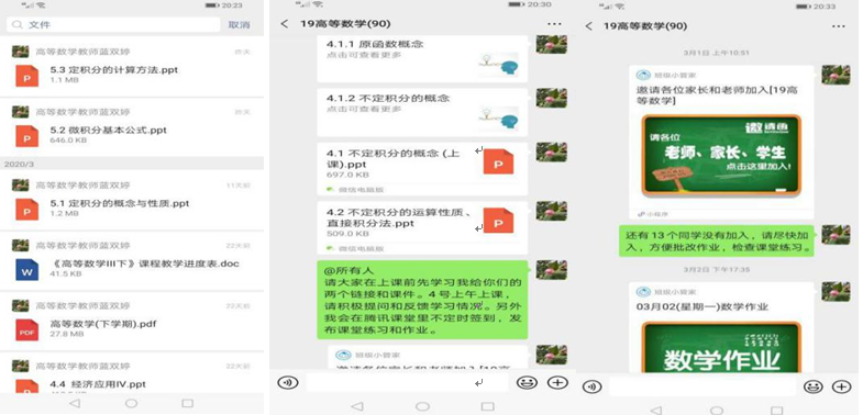 其中优秀案例为黄术、蓝双婷老师讲授的《高等数学》,教师每周提前将手写稿教案、电子版课件、教学进度安排以及本周的作业任务等发到云班课(或微信群、钉钉群)。同学们提前做好预习准备。