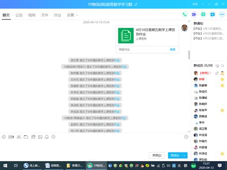 (1)建立19物流班和物流师班的《高等数学II》QQ群(892953878),发布斗鱼直播间网址(https://www.douyu.com/8084509)。让学生线上自学和预习,通过QQ群,发布电子版课本、教学课件、教学进度表、教学内容和课后作业。