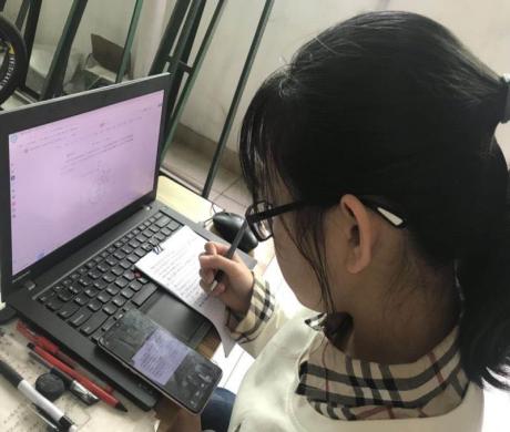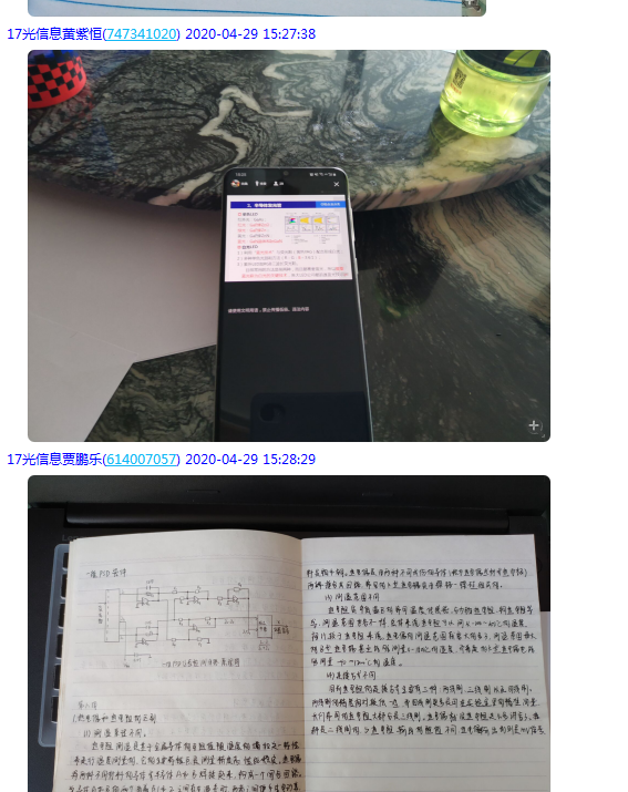 线上教学已开展9周,除了个别同学请假,其他部分同学上课都能按时到位。学生上课情况良好,积极回答问题。从学生发回的在线学习照片来看(图4),同学们都能排除各种干扰,用电脑或手机坚持按时上课,认真参与讨论。