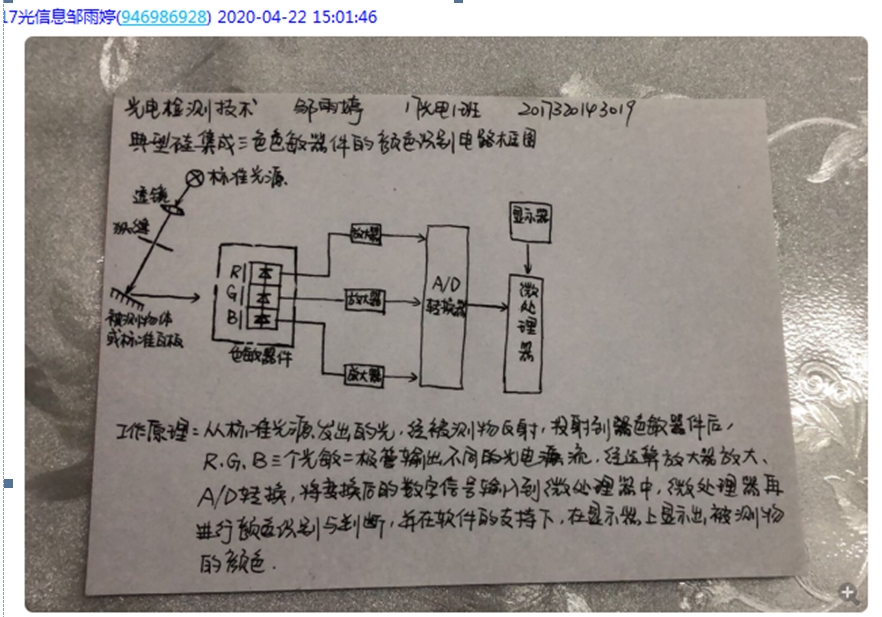 任课教师都能熟悉选定好的线上教学模式,将与教材契合度高的教学视频资源提前上传至教学群中,让学生下载学习,上课时段通过在线软件平台直播授课,讲解课程的重点难点,让学生更有针对性进行学习。直播上课网络稳定顺畅,大部分时间和学生交流互动比较好,用答“1”和“2”的问答方式比较快捷方便。同时,在线上课堂,安排随堂测试(图1),采用随机点名的方式向特定的同学提问,设定不同类型的问题让大家进行头脑风暴,提高大家的注意力和学习兴趣。并且根据学生课上课下的反馈意见,在教学过程中多讲些习题,在这两周的课程中许多老师都安排一定时间的习题课。另外,对新知识点进行更深入的讲解,以便学生能够更好的跟上老师的讲解思路,掌握知识点。为了调动学生学习积极性,汪洁老师和李艳老师线上授课时增加了QQ群作业中的“模范作业”功能和优秀小组讨论结果展示,对激励学生积极认真地完成作业起到一个引领导向的作用(图2-图3)。
