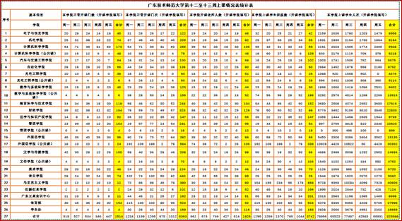 如图8、图9所示,第十二周至第十三周,全校3742个班级开展线上学习。其中,马克思主义学院承担了858个班级教学任务,体育部承担524个班级教学任务,外国语学院承担了404个班级教学任务,广东工业实训中心承担了201个班级教学任务。