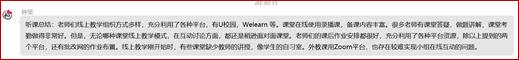 ③部分仅使用录播或者仅通过观看线上教学资源的课程效果不好。建议任课教师通过穿插直播讲解,增加课堂互动性,减少“挂机”现象,提高同学们课堂参与度和关注度。