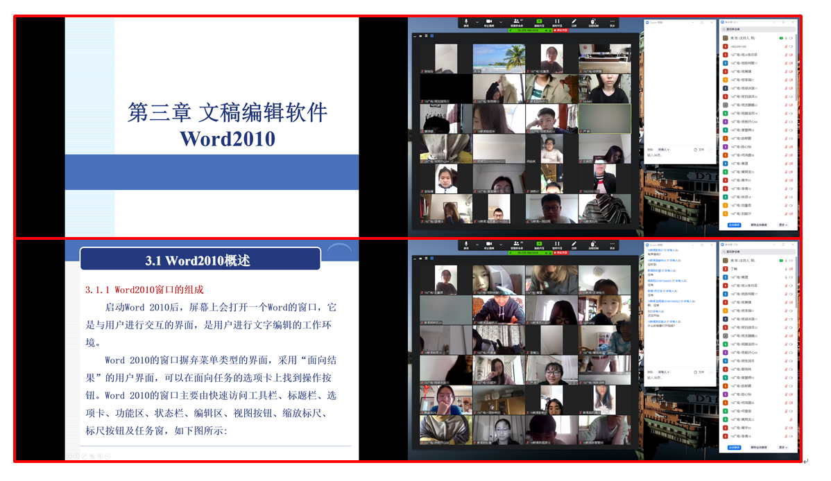 图16使用ZOOM软件直播教学的教师端双屏显示页面截图合图