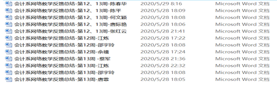 从线上教学反馈情况来看,线上授课教学秩序良好,授课平台使用熟练,且考虑到学生在线学习接受程度,合理安排课程内容,能够运用视频、网络课程等多种资源,综合采用线上授课、互动、作业、答疑、测试等方式,顺利开展教学活动。其中网络教学平台工具的使用,主要包括慕课、超星学习通、雨课堂、智慧树等。网络工具主要的使用,只要有企业微信、QQ群、微信群、腾讯会议等。任课教师在线教学情况正常,平稳有序展开,多举措并举加强线上学习过程管理和质量提升。第一,严肃课堂纪律,持续加强对学生的管理,积极签到;第二,授课方式不断改善,不断改进课程质量;第三,充分利用各种平台的功能,增加试题练习,增强互动、杜绝挂课等;第四,探讨在线作业的内容、形式以及频率的适切性,巩固在线教学成果、保证教学过程的完整性和连续性。教师在线教学情况正常,平稳有序展开,多举措并举加强线上学习过程管理和质量提升。第十二周各系组织了线上教学经验交流教师座谈会,争对目前线上教学出现的问题进行交流,并提出了相应的解决办法,老师们结合自身线上教学积极发言,相互交流。21日前所有毕业生完成一辩,23日下午组织了二辩,24位同学参加优秀组答辩,11位同学参加普通组答辩。优秀组答辩经过答辩委员讨论,决定推荐三位同学为学校优秀论文。普通组答辩经过答辩委员讨论,有七位同学通过答辩,有四位同学论文答辩不通过。