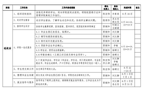 组图3:管理学院2020届毕业生返校、爱校荣校教育和安全文明离校工作任务分解表截图及管院第一批毕业生返校花絮展示