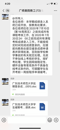 这两周,本科线上教学工作仍如常进行,大部分课程在这两周正式进入尾声,即将迎来期末考核,但本科教学工作还远未结束,在这个特殊的时期,线上期末考核以何种方式进行、能否顺利开展、效果如何都是教学工作中要思考的问题,美术学院听从教务处安排,首先对各课程的考查方式考核平台进行摸底,其次对于在本学期内无法完成期末考核的课程,尤其是需用到实验实训室设备的时间课程准予缓考与成绩缓录,一系列相关举措和政策保证疫情期间期末考核顺利、高效、灵活地进行。