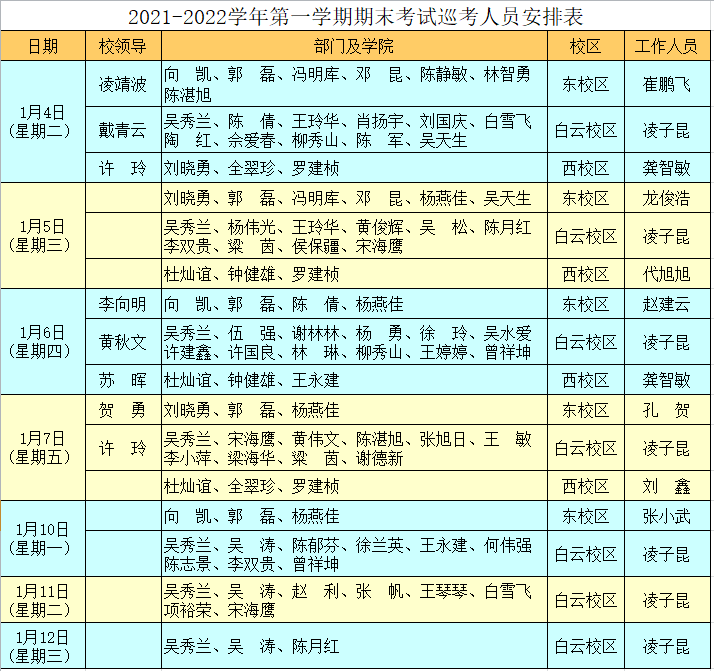 3.巡考集中地点:白云校区第三教学楼105教师休息室