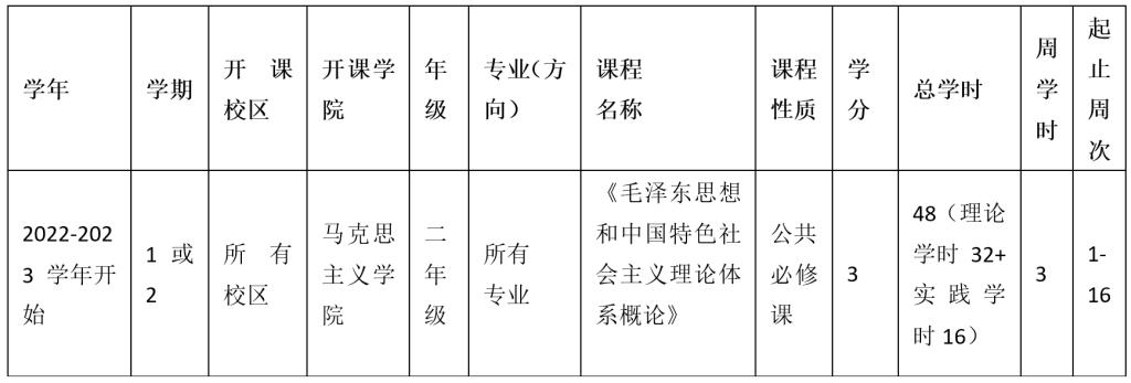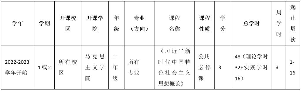 根据中宣部、教育部相关文件精神,从2022年秋季学期起,在全校本科生中,全面开设《习近平新时代中国特色社会主义思想概论》课,并对《毛泽东思想和中国特色社会主义理论体系概论》课的学分进行调整,具体如下: