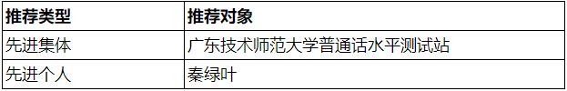 根据教育部、国家语委《关于评选表彰国家通用语言文字推广普及先进集体和先进个人的通知》(教语用函〔2022〕2号)及广东省教育厅相关要求,学校组织开展了遴选推荐工作,经学院推荐、学校审核,拟推荐名单公示如下(拟推荐对象基本情况和工作实绩见附件):