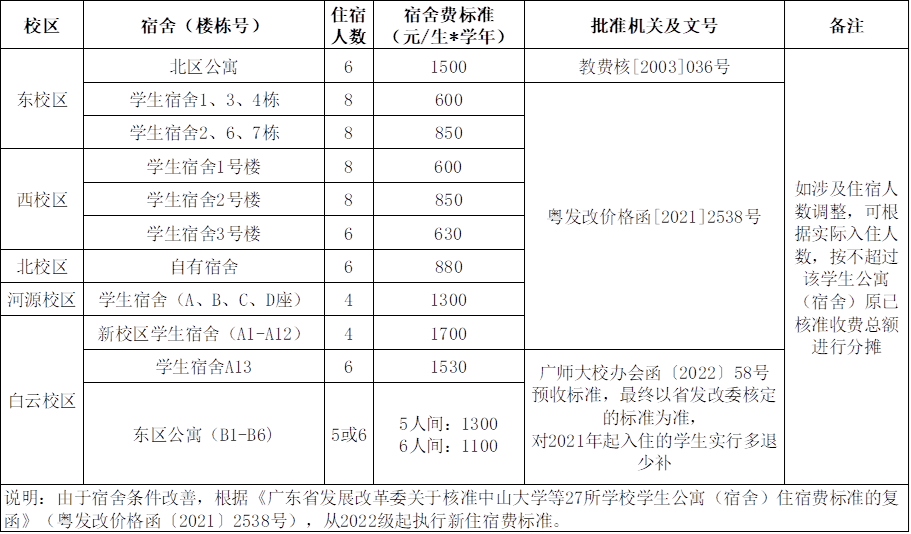 (三)住宿费:如涉及住宿人数调整,将根据实际入住人数,按该学生公寓(宿舍)已核准收费总额进行分摊。