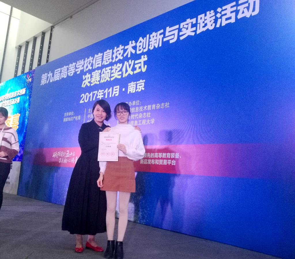 11月2日,第九届全国高等学校信息技术创新与实践活动决赛在南京信息工程大学举行。数学与系统科学学院2014级数学与应用数学(师范)本科班谢观勇同学(指导教师:张淑玲),经过初赛、复赛和决赛三个阶段,过关斩将,最终荣获师范创新类——“未来教师”教学技能决赛二等奖。