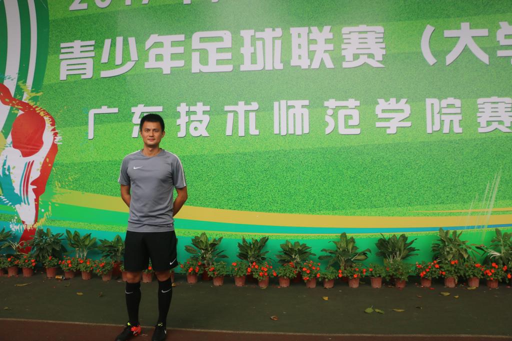 11月11日下午,现役唯一广东籍中国超级联赛主裁,曾多次参与亚洲杯、亚冠联赛、东亚杯等亚洲顶级赛事执法的国际A级裁判“铁哨”李海新莅临2017年“省长杯”青少年足球联赛(大学组)广东技术师范学院赛区校本部赛场,担任专业组半决赛华南理工大学代表队对广东工业大学代表队比赛的主裁。
