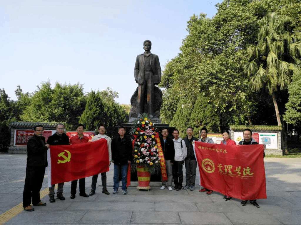 12月9日,管理学院党委组织部分党员教师到河源市革命烈士陵园开展主题党日活动。党员教师们列队在阮啸仙烈士雕像前,重温了入党誓词,并向烈士敬献花篮,缅怀烈士的丰功伟绩。