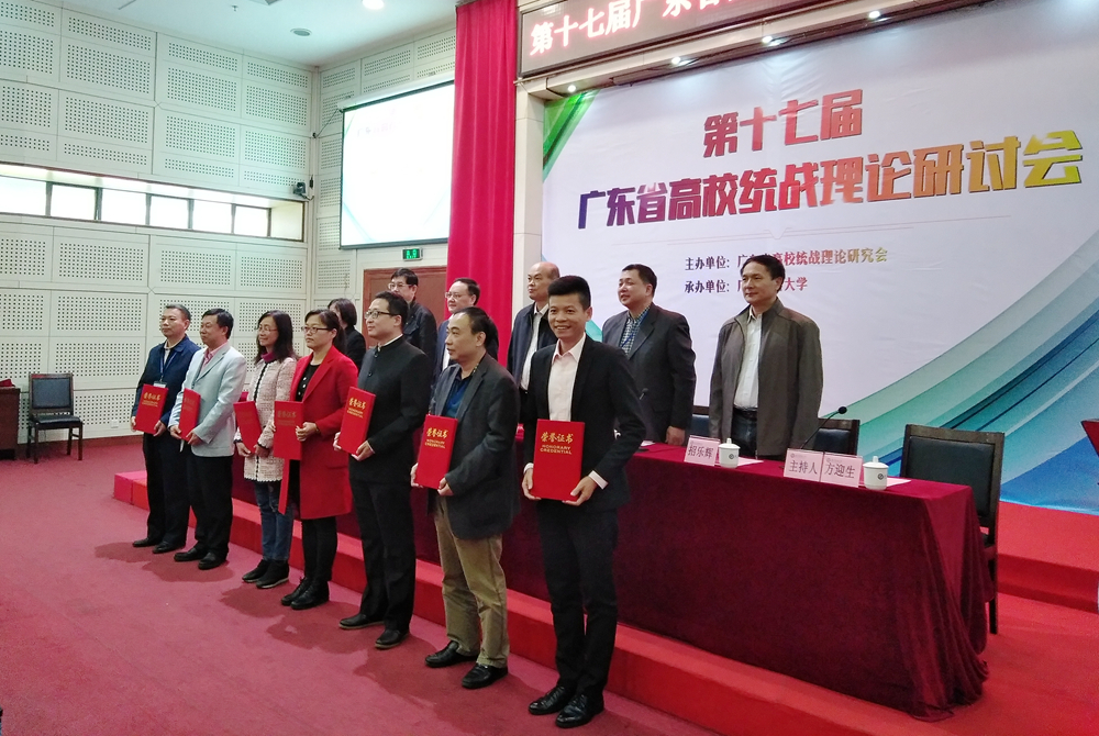 大会对本届研讨会优秀论文进行了表彰。据统计,本次研讨会共收集到全省29所高校254篇论文,经论文评审会九位专家评选出优秀论文42篇(不设一二三等奖,获奖论统一评为“优秀论文”),优秀论文获奖率为16.5%。我院依托2017年首次设立的“广东技术师范学院统战课题”,共向研究会共推荐统战论文10篇,其中黄文浩同志的论文《文化何以统战——文化语境中统战工作再思考》获得广东高校第17届统战理论研讨会优秀论文。(党委统战部)