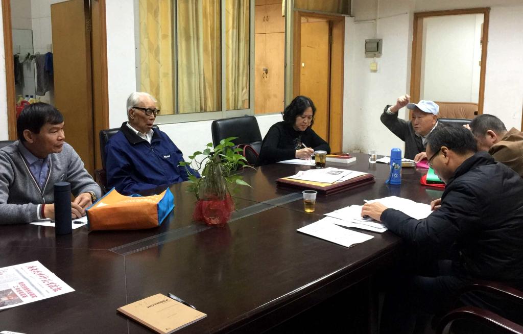 党的十九大结束后,南校区离退休老党员以多种形式掀起学习十九大精神的高潮,其中最有特色、最令人感动的要算离退休党委第13支部的离休老党员。该支部五位成员中,年龄最高的90岁,最小的88岁。由于他们年事已高,视力和听力退化严重,读书看报要靠放大镜,深感自主学习有困难,但又不想放弃对十九大精神的学习。为满足离休老党员渴望学习的迫切愿望,13支部书记姚宗文同志找到管理2科的同志和平时注重政治学习理论水平较高的彭协寅同志(第17支部老党员)一起商量寻找解决办法,在离退休党委的大力支持下,决定建立互助互学学习小组,让学习能力较强、理论水平较高的其他支部党员当他们的“眼睛”,帮助他们更好地学懂、弄通、做实十九大精神。