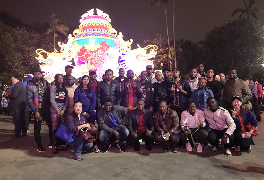 在赏花灯时,国际教育学院的老师们向留学生介绍了中国元宵节的习俗,讲解了各种花灯的寓意。在“锦绣中华”大型灯组前讲解了中国龙、牡丹花的寓意以及中国生肖文化;在长度超百米的水面帆船灯组“扬帆启航”前,讲解了明朝郑和七下西洋的壮举和海上丝绸之路的形成以及广州的重要作用;在“敦煌印象”灯饰前讲解了敦煌在古丝绸之路的重要作用及敦煌文化瑰宝;在大世界吉尼斯灯组“灯耀五洲”前,讲解了中国梦以及中国促进世界和平和构建人类命运共同体的愿景。