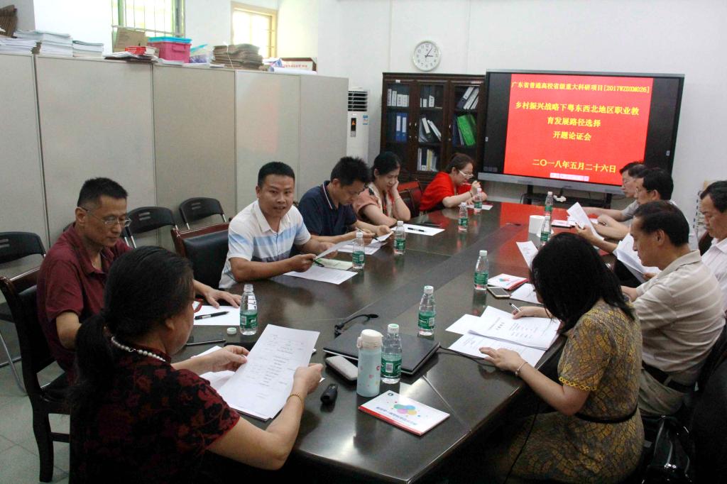 近日,我院教育科学与技术学院陶红教授主持申报的广东省教育厅基础研究重大项目《乡村振兴战略下粤东西北地区职业教育发展路径选择》(2017WZDXM026)课题开题报告会在校本部举行。中山大学教育现代化研究中心主任、博士生导师冯增俊教授,华南理工大学公共管理学院赵庆年教授,嘉应学院教育学院院长彭旭教授,韶关学院学报编辑部主编王焰安教授和我院教育科学与技术学院副院长陈丽君教授担任评议专家,冯增俊任专家组组长。科研处相关老师和课题组成员参加了本次报告会。
