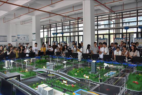 在汽车与交通工程学院实验实训与创新中心,中心负责人向新生介绍城市道路智能交通模拟沙盘、汽车电控设备实训室等的作用和实训情况。现场的学生“科技社”、“广师之翼车队”和“广师征战者巴哈车队”师兄师姐们,向新生展示极具创意的参赛作品,讲述了自己多次参赛喜获佳绩的收获和体会,引起新生的浓厚兴趣。