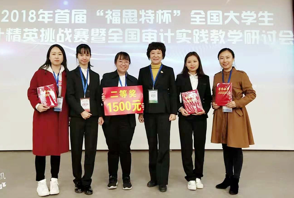 11月9日—10日,由中国商业会计学会主办,中国高等教育学会高等财经教育分会指导,南京审计大学承办的首届“福思特杯”全国大学生审计精英挑战赛在南京审计大学举行。财经学院学生沙瑜诗、黄洁婷、黄心莹组成的参赛团队(指导老师:何文颖、吴丹)表现出色,获得大赛二等奖。