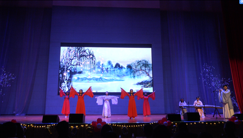 广师六十一载风雨兼程烙上的是广师人一步步砥砺奋进的印记,师生朗诵和百人校歌合唱节目《在成长中自强不息》气势宏大,催人向上,激励广师学子不负韶华,用智慧与汗水学习和践行“厚德、博学、为实、求新”的校训,用奋进之笔书写青春华章;女高音独唱《新的天地》歌颂祖国大好山河,热情歌颂改革开放四十年来社会主义现代化建设取得的辉煌成就,观众们情不自禁地呐喊:厉害了我的国!