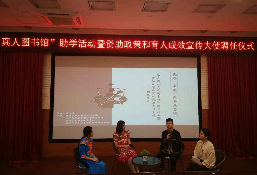 “民族一家亲,同舟共奋进。”日前,第六期“真人图书馆”助学系列活动举行。学生处、各二级学院有关老师、各二级学院受助学生代表等参加了活动。