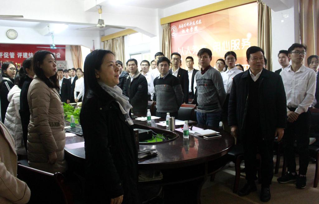 1月4日下午,机电学院党委在西校区党员活动室举行“2018年党建工作总结表彰大会暨预备党员入党宣誓仪式”。机电学院党委领导、全体辅导员、全体学生党员和入党积极分子120余人参加大会。