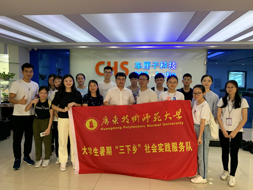 为响应广东省教育厅开展“携手奔小康 共筑中国梦”大学生暑期社会实践活动的号召,让学生直观了解和学习相关专业产品的生产过程,提高学生对专业知识的认知能力和社会实践能力,7月12日,电子与信息学院启明星小分队在蔡君老师、范艺老师和辅导员宋玉林老师的带领下赴广州市车厘子电子科技有限公司开展社会调研活动。