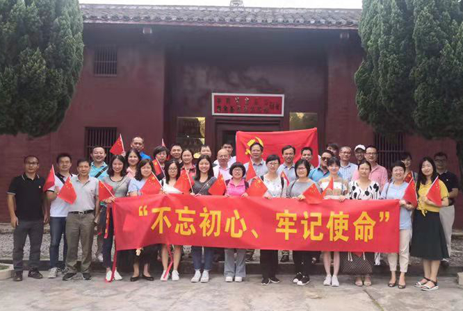 在紫金县苏区镇,全体党员干部在教育科学与技术学院党委书记林启词、发展规划处党支部书记邓文新的带领下,先后参观了苏维埃政府旧址、红军亭等革命遗址,瞻仰了周恩来和徐向前等老一辈无产阶级革命家在苏区挥戈征战的遗迹。1928年3月,国民党反动派向我苏区大举进攻,实行惨无人道的“三光”政策。450多名革命干部群众更是遭敌人用机枪集体屠杀牺牲在这小小的八分稻田里,鲜血洒满稻田,溢出田埂,流入琴江。后来,人们称它为“血田”。“血田”是国民党反动派和地主阶级镇压革命、屠杀人民的罪恶见证。1977年12月,“血田”碑列为县重点文物保护单位。离“血田”纪念碑不远,就是红屋,这里是中共紫金县委、紫金县苏维埃政府的旧址,在这里大家聆听了革命先烈的事迹,并重温了入党誓词。大家深刻感受老一辈革命家坚韧不拔、英勇不屈的精神和坚定的理想信念。在苏区旧址,全体成员通过快闪方式手挥五星红旗,齐唱《我和我的祖国》,用嘹亮之声喜迎中华人民共和国成立70周年,表达对党和国家的热忱之情。