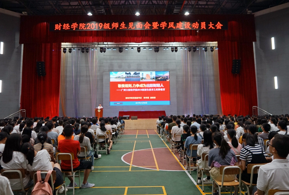 为让新生更好地了解专业所学知识,更快适应大学生活,10月8日,财经学院2019级师生见面会暨学风建设动员大会在白云校区学生活动中心举行。学院党委书记吴松,院长谢林林,党委副书记林幸福,副院长周清、副院长刘国庆,以及各专业系主任、新生班班主任、辅导员等出席此次会议。林幸福主持会议。