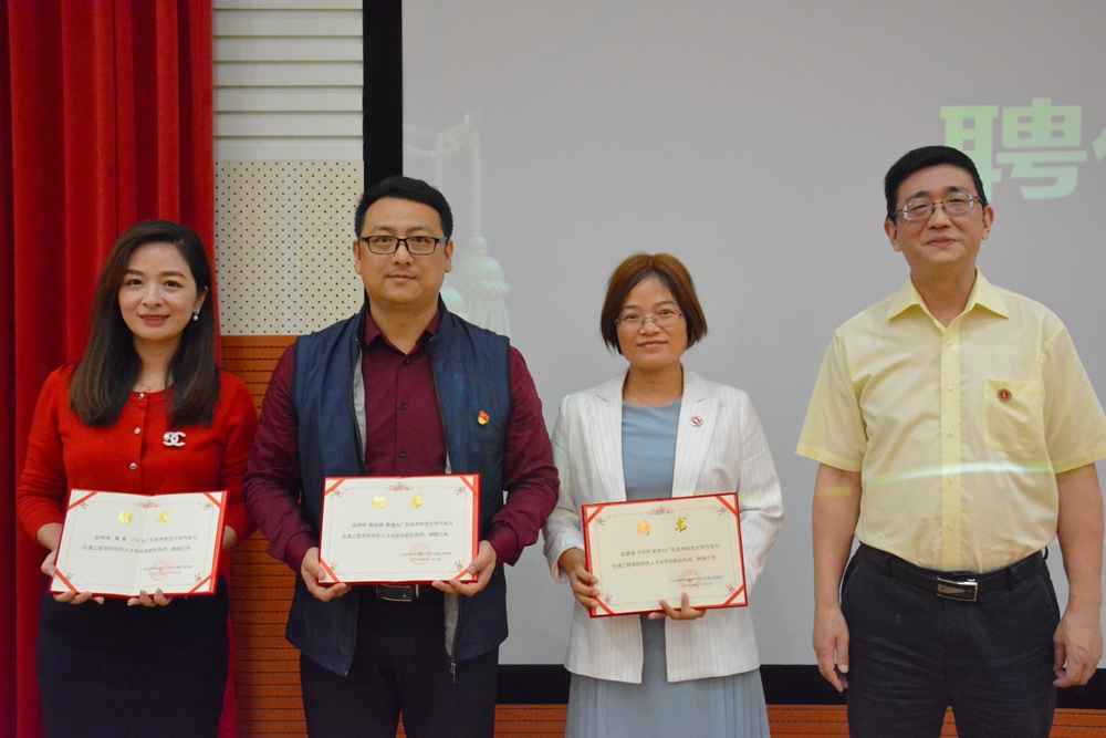 随后,徐伟分别给“特色人才培养创新班”的三位特聘导师发了聘书,三位特聘导师分别是广东省五一劳动奖章获得者、广东省“南粤优秀教师”、广东省特支计划“青年文化英才”李尚旗教授;广州全人教育特聘高级辅导师、国家二级心理咨询师王明粤老师;全球职业规划师GCDF、全球生涯教练BCC陈薇老师。