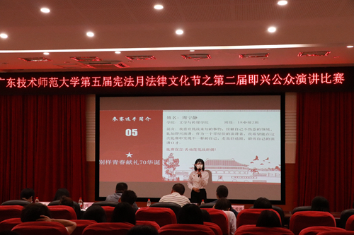 11月27日,第五届宪法月法律文化节主题演讲比赛在白云校区三教104报告厅举办,比赛吸引白云校区300余名学生到场观看。