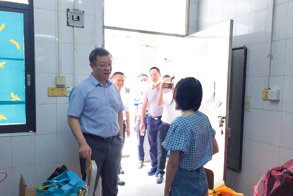 图为骆少明校长率队检查指导管理学院学生返校工作