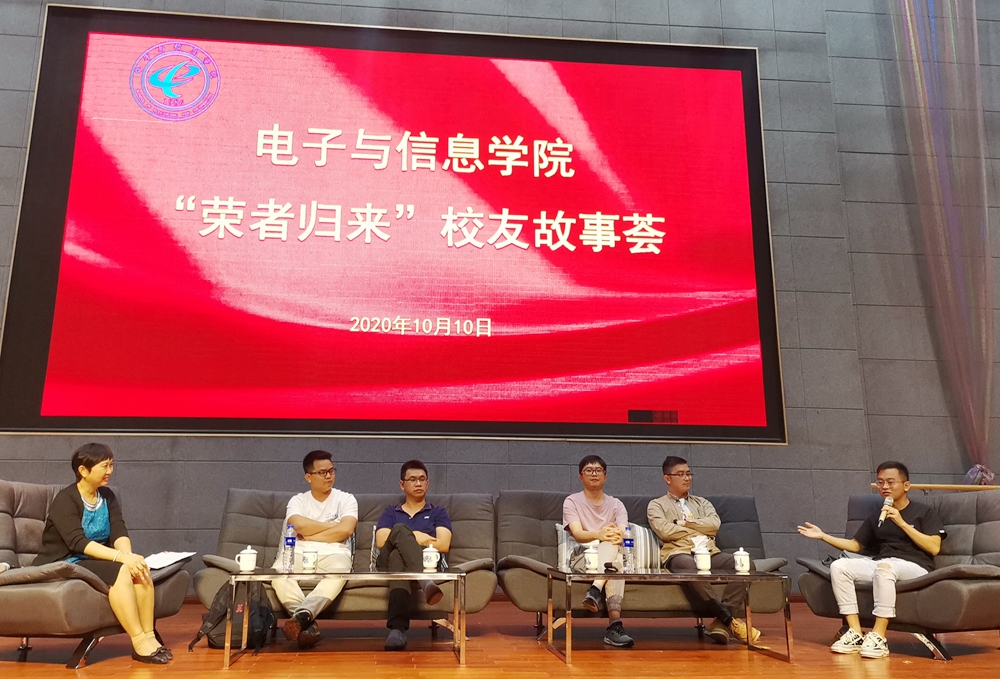 10月10日,电子与信息学院在白云校区学生活动中心开展了第三期“荣者归来——校友故事荟”活动,邀请五位优秀校友返校为新生讲述逐梦拼搏故事,分享成长奋斗经验。电子与信息学院班子成员、辅导员、专业教师代表与全体2020级新生共计600余人参加了此次活动。活动由徐小平院长主持。
