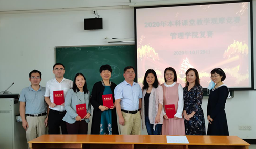 三尺讲台存日月,一支粉笔写春秋。10月29日,管理学院举行了2020年本科课堂教学观摩竞赛。管理学院副院长吴小立教授、易建华副教授,以及工商管理专业负责人邓芳副教授、公共管理系主任黄开腾副教授、市场营销专业负责人李黎副教授到比赛现场并担任评委。