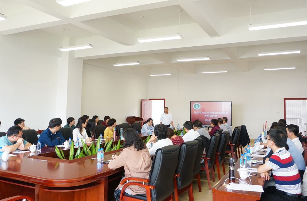 随后,专题教学研讨会在河源校区厚德楼418会议室举办。研讨会由学院院长黄俊辉主持。黄俊辉对专业建设、法学一级硕士学位授权点申报条件、法律硕士专业学位授权点申报条件、学院目前状况与发展方向作了详细介绍。黄俊辉、于定勇、林蔚分别作了法学专业、知识产权专业人才培养方案修订的汇报。许建鑫希望老师们把握好学校学院发展机遇,聚焦学院中心工作立德树人,以问题为导向,狠抓工作落实,潜心谋划法学与知识产权学院高质量发展。