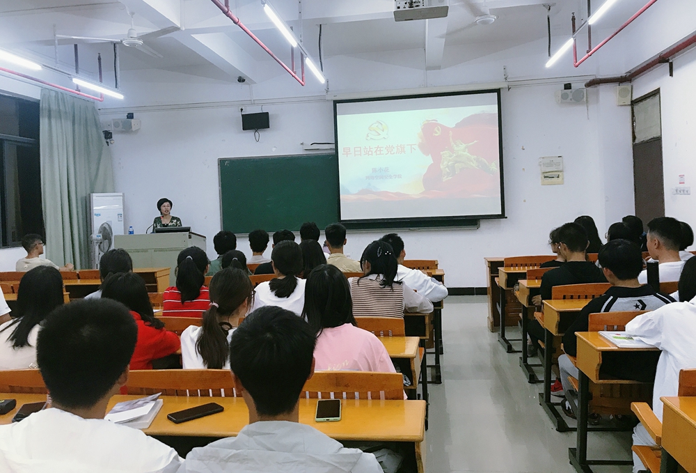 陈小花为全体新生上了题为《早日站在党旗下》的入党启蒙教育课。陈小花以党代表的身份从亲身经历的十九大谈起,回顾党的历史,介绍党的发展历程,并解读了十九届五中全会精神。陈小花着重讲解了入党的标准、条件及基本程序,强调了树立正确入党动机的重要性,鼓励同学们坚定理想信念,用实际行动践行党的宗旨,不断向组织靠拢。