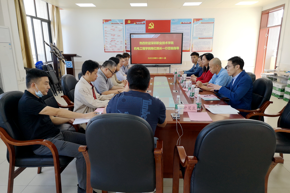 陈红对学院在专业建设及学生培养等方面取得的成绩表示赞赏,并介绍了深圳职业技术学院机电工程学院的办学历史、学生培养、就业引领等情况。