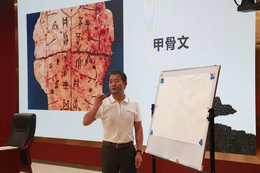 在讲座中,陈水冬以“书法的起源与发展”为切入点,阐述了书法的年代与字体、字体的演变及名家名作、当代书法的传承与发展状况。陈水冬强调学习书法的时代意义,引导同学们更好地学好书法,弘扬中华优秀传统文化,厚植爱国爱党情怀,提高审美鉴赏力,陶冶高尚情操。讲座过程中,陈水冬与师生还进行了互动,现场气氛热烈。