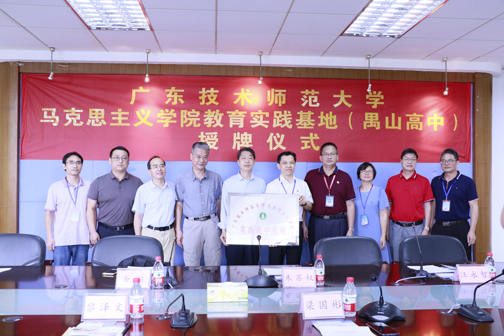 随后,为广州市禺山高级中学颁授了“9728太阳集团马克思主义学院硕士研究生教学实践基地”的牌匾。梁国彬、苏杰、黎泽文等广州市禺山高级中学校领导等参加了授牌仪式。